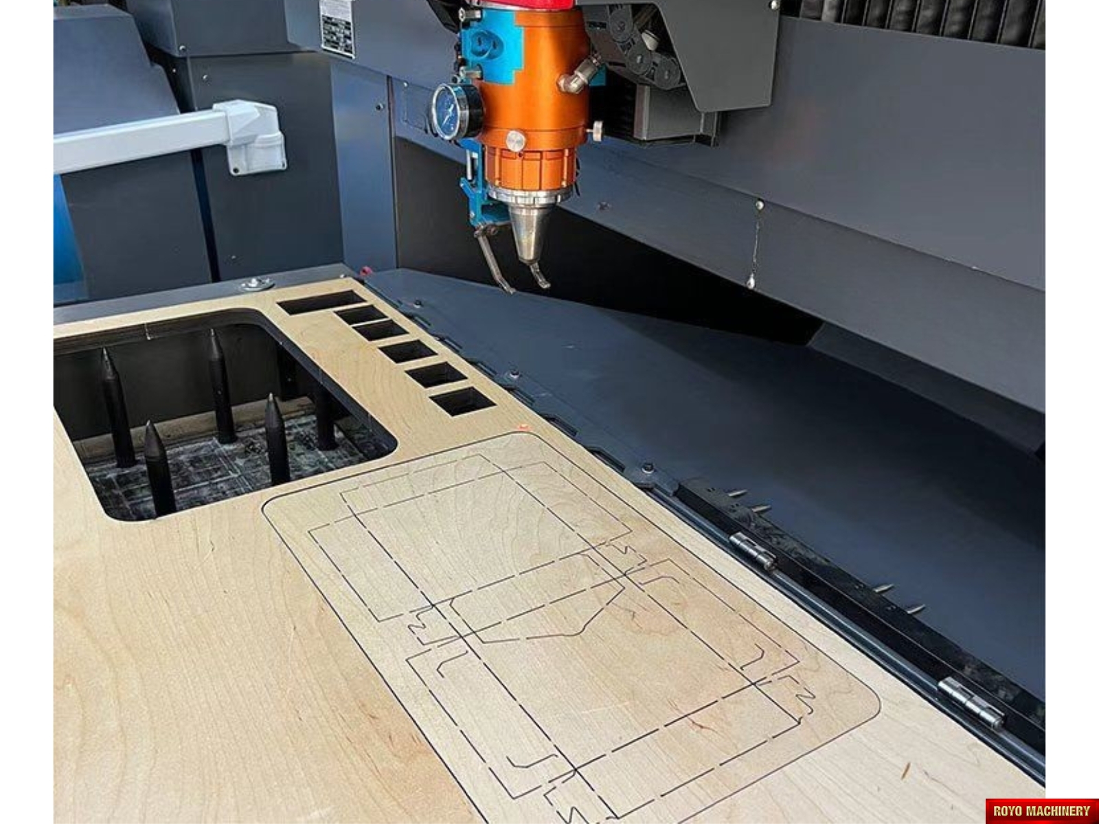 Longitud de recorrido del eje X: 1220 mm, Puerto de Entrada: USB, Tipo de transmisión: Tornillo a bolas con guías lineales, Partida Arancelaria sugerida: 8456.11.9000, Espesor de la cuchilla: 0.45 0.71 1.05 1.42 mm controlable, Humedad Relativa: Menor a 80%, Software de diseño recomendado: CAD / CorelDraw, Potencia Requerida: 18 kW, Precisión de Corte: +/-0.02 mm, Archivos útiles: PLT DXF BMP JPG GIF PGN TIF, Tipo de movimiento: Cabezal y cama con desplazamiento, Motor de accionamiento: Servomotor, Tipo de laser: Fuente láser de CO2 de flujo axial de alta potencia, Potencia del láser: 1500 W, Consumo de gas He y Ne: 130 horas/botella, Motor de accionamiento: Servomotor, Software de Control: Propietario del fabricante, Temp. Ambiente: De 5 a 35 Celsius, Area útil: 1280 x 2500 mm, Dimensiones: 4800 x 2300 x 2300 mm, Tolerancia de corte: +/-0.02 mm, Velocidad de Corte: Hasta 120 Metros/Hora, Tipo de Agua para Enfriado: Agua Purificada, Temp. del Agua para Enfriado: 5 Celsius, Consumo de CO2: 1 botella/año, Longitud de recorrido del eje Y: 2440 mm, Función de marcado rápido por láser