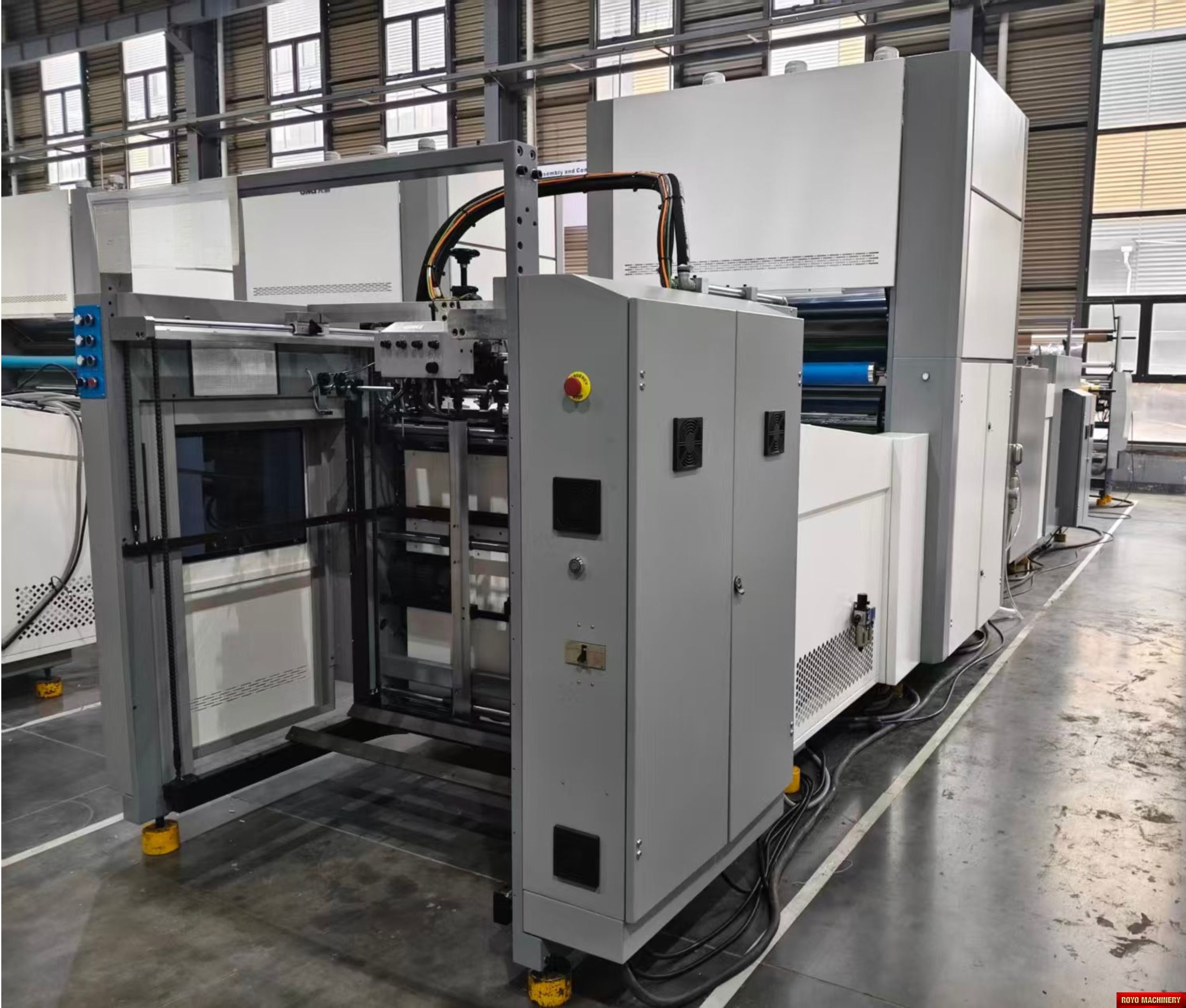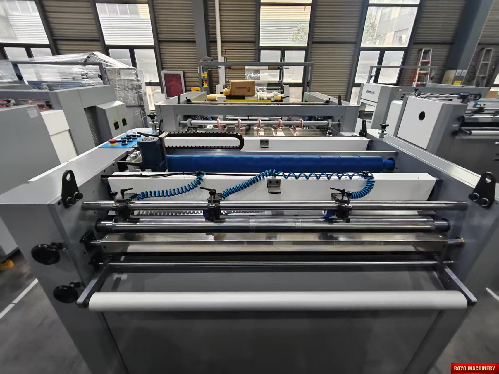 Sheet separator, Stacker (Optional), Sheet decurler, Paper thickness: 100-500 gsm, Electromagnetic heater, Suggested HS code: 8420.10.0090, Total Power: 60kw, Voltage: 220V 60/50HZ, Min. Paper size: 300 x 260 mm, Water base and thermal lamination, Max. Paper size: 1080 x 900 mm, Laminating Speed: 0-100 m/min, Dimensions (LxWxH): 8150 x 2550 x 3150 mm, Delivery table with jogger, Chain knife, Pre-loader